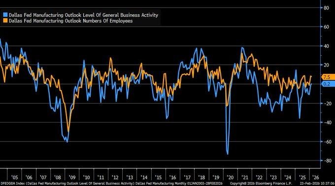 The manufacturing index, as reported by the Dallas Fed for February 2026, rose to +0.2 from -1.2 in the preceding month, beating market expectations and signaling a return to expansion for Texas manufacturing activity. Although the increase might not seem significant, the psychological impact of this improvement from contractionary territory to expansionary territory, after experiencing considerable volatility throughout 2025, is considerable. Production levels remained strong at 12.5, and the new orders level was unchanged at 11.1, indicating an improvement in demand pipelines rather than a weakening of the same. Texas manufacturing is an important bellwether for the manufacturing sector, given its exposure to energy equipment, machinery, and intermediate goods production, making it an early indicator of the sector’s sentiment. The stability in the demand pipeline, indicated by the unchanged level of new orders, suggests that clients are continuing to stick to their schedules despite the tightening of financial conditions and global demand crosswinds.