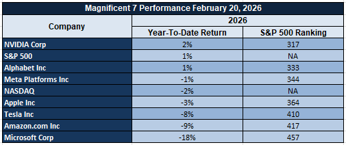 The Magnificent Seven, consisting of Apple, Microsoft, Nvidia, Amazon, Meta, Alphabet, and Tesla, continue to dominate market direction for the S&P 500 index. Nvidia dominates AI infrastructure flows, and the others are being tested on their margins and ability to be monetized. Any significant weakness in these names, especially within the core group of the Magnificent Seven, is exerting pressure on the S&P 500 and the Nasdaq Composite, highlighting the importance of these seven stocks on market direction.