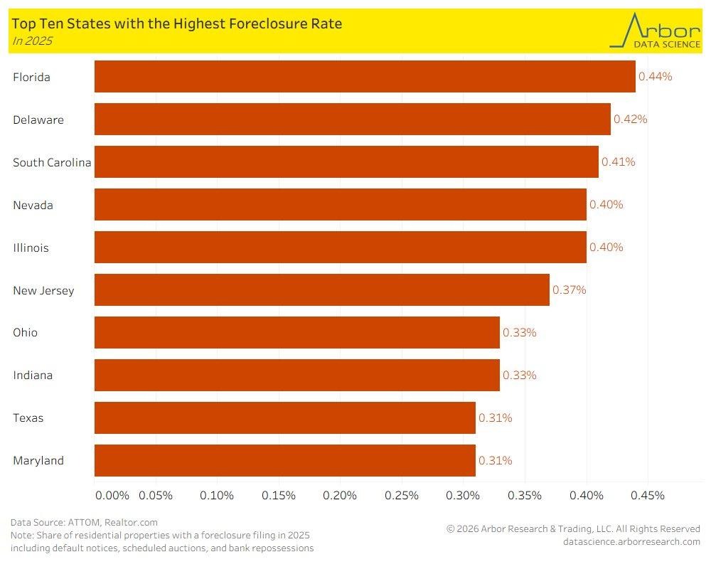 The housing stress metrics indicate that one of the larger southern states is currently dominating the national landscape for residential foreclosures in 2025, with levels now surpassing those of other traditionally housing-vulnerable states. However, the rise is not due to decreased demand but instead an increasing affordability challenge, driven by sharply increasing ownership costs. This is because homeowners are currently experiencing increasing insurance premiums, already-high property taxes, and persistently high maintenance costs. From our point of view, this indicates an increasing housing stress cycle driven by costs, not housing demand.