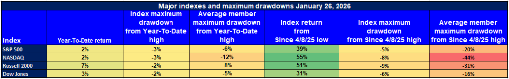 YTD return: +2% | Max drawdown from YTD high: -3% | Avg. member drawdown from YTD high: -6% | Return since 4/8/25 low: +39% | Max drawdown since 4/8/25 low: -5% | Avg. member drawdown since 4/8/25 low: -20%