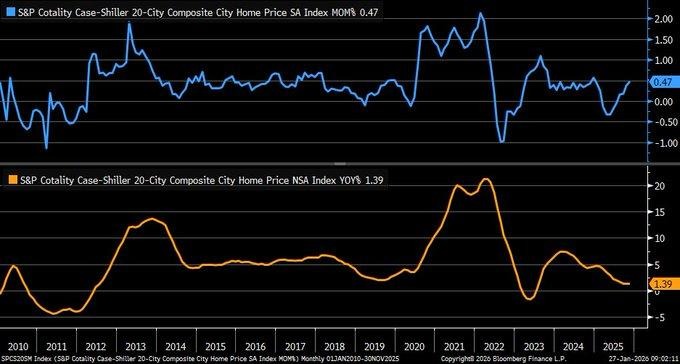 The economic data from yesterday has already set the stage for this high gold price environment. The mixed economic indicators, which are showing less-than-trend economic growth, uneven labor market momentum, and weak forward-looking indicators, have limited the upside room for real yields, keeping the opportunity cost of holding gold relatively attractive. More importantly, the widening gap between current economic activity remaining strong and leading indicators weakening has created demand for assets that provide purchasing power protection without requiring economic growth acceleration.
