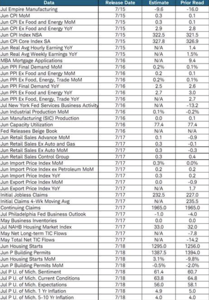 Inflation is front and center with three significant readouts: month-to-month core CPI, month-to-month headline CPI, and year-over-year CPI.