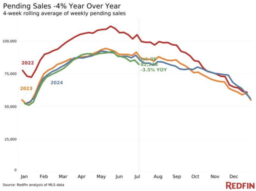 Here at Zaye Capital Markets, we take a second look at this latest 4% year-over-year drop inpending home purchases, reported in recently released housing market statistics. This greater fall—a greater one than in 2022–2024—a greater one with increasingly higher mortgage expenses evermore suppressing buying activity. With current 30-year fixed mortgage rates at some 6.7%, significantly higher than long-term average 5.5%, affordability squeeze accumulates, in spite of May’s modest 1.8% in-the-black pickup in purchases. It would seem markets have gone cyclical slowdown mode, driven no doubt in large measure due to unrelenting rates in combination with lofty residential prices.