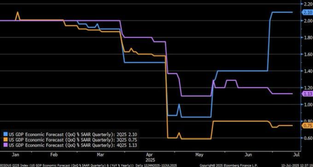 We’re following closely the reversing trend in U.S. GDP growth with recent estimates depicting a crescendo of about 2.5% in Q2 2025, returning to 1.5% at year-end. That forecast allows for sporadic surge from front-loading of import demand in early 2025 when companies front-run imports ahead of tariff hike. Such chretienic surge as this inflated headline growth is not on this ground on which long-term growth will be built. That trend is already unwinding because of tainted consumption as well as increased trade barriers.