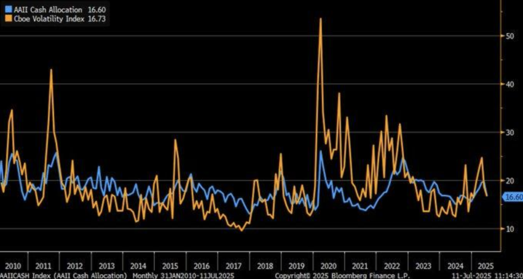 Historically, VIX served as a sentiment leading indicator of sentiment in markets—necessarily dropping before bull runs—but is context-dependent in its predictive capacity. Events such as the 2022 Ukraine-Russia crisis illustrated VIX’s limitations in periods of geopolitical tension, in this case, in response being less severe than expected. Cash allocation between 2010–2025 shows cash allocation is tactical rather than reactive in nature, with retail investors trading on volatility breakpoints rather than extremes of sentiment in fear.