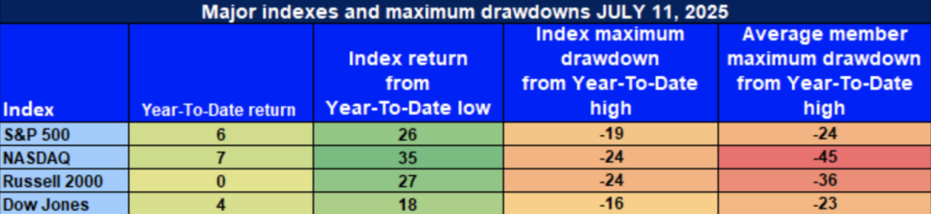 We’re observing closely at Zaye Capital Markets U.S. equity recovery from April 8 low. Headlines appear robustly recovered, yet constituent performance beneath headlines tells a highly broken tale. Although major gauges have been improving, member average drawdowns suggest limited leadership and continuing investor skittishness throughout industry.