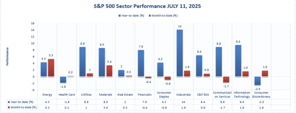 We are paying close attention to the dispersion at the sector level of the S&P 500, where strength is far from being evenly distributed across the 11 sector groups. Among the 11 sectors, Industrials have been the clear-cut strongest performer thus far in 2025, rising +14.0% year-to-date, ahead of all other groups. Such strength is mirrored in solid demand in the infrastructure, aerospace, and machinery units—segments with solid government contract-based and capex-related initiatives.