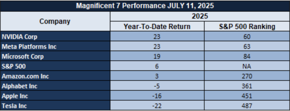 The S&P 500 is faltering as key members of the “Magnificent Seven” struggle with profit-taking and policy risk. Both Tesla and Nvidia lagged, with Tesla bogged down by the weight of regulator uncertainty along with difficulties with pullbacks after staggering year-to-date gains for Nvidia. Both Apple and Amazon continued to lag with consumer-based indicators weakening, while Microsoft and Alphabet have remained in relatively solid ground. Concentration risk in these mega-cap stocks is in increasing focus, acting as fuel for thinner market breadth as well as defensive rotation.