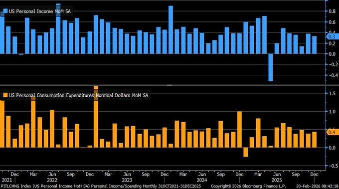 Yesterday’s economic data compounded that pressure. Slowing personal income growth, a decline in the savings rate to 3.6%, flat consumer spending, and core PCE inflation at 3.0% indicate a consumer sector facing tighter financial conditions without clear inflation relief. That environment sustains elevated real yields and constrains speculative capital allocation into non-yielding assets such as digital currencies. Reports describing Bitcoin’s worst start to a year through the first 50 days, persistent “panic premium” in options markets, and downside sentiment spikes reflect hedging behavior rather than aggressive accumulation. Structural developments such as expanded institutional trading infrastructure remain long-term supportive, but near-term price discovery is being driven by macro risk recalibration rather than crypto-native catalysts. If upcoming central bank commentary reinforces restrictive policy and dollar strength, downside volatility may persist; conversely, signals of easing liquidity could stabilize the $64,000–$65,000 region. The ecosystem is currently being shaped by trade policy escalation, geopolitical uncertainty, and tightening liquidity — not by supply-side Bitcoin fundamentals.
