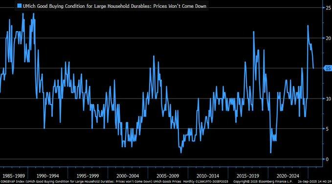 The latest data from the University of Michigan consumer sentiment survey shows that “Buying Conditions for Large Household Durables” index has declined substantially from its earlier 2000s’ levels. Nevertheless, present data indicates that consumers are looking forward to some relief in prices that is most likely associated with softening trends in inflation. This development is consistent with reports including Atradius Collections’ 2025 forecast that anticipates a sales rise of 5.3% in consumer durables. Consumers appear to be hoping for some relief from price pressures that could foreshadow inflation might come down from its earlier feared status of being as entrenched. Optimism of this sort is going to have to be diluted by a grain of salt given that the wider economic situation is flashing signs of divergence that particularly exist between consumer sentiment and labor market realities.