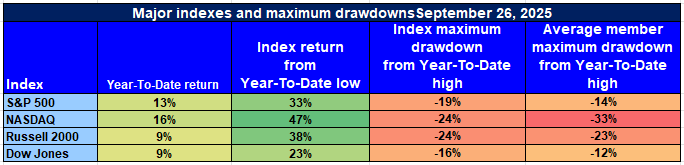 Major Index Performance through Tuesday, September 30th 2025