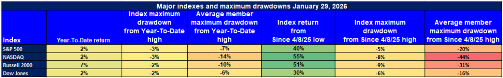 YTD: +2% | +40% since 4/8/25 low | -3% from YTD high | Avg. member: -7%