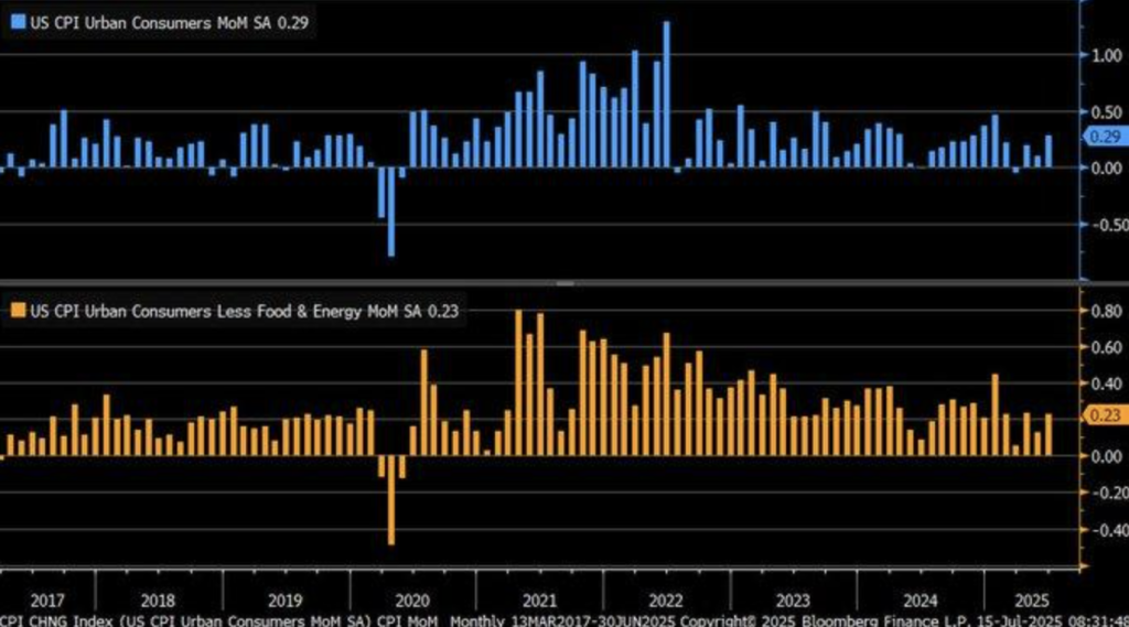 June 2025 figures reveal a stunning picture of persistence of inflation of American economy. Headline CPI increased 0.29% month-on-month, while core CPI, leaving aside foodables and fuel items, which are volatile in nature, increased 0.23%, sequel to the last increase of 0.10%. It reiterates the conclusion of Federal Reserve analysis of 2024 that core CPI is a superior measure of long-term trend of inflation. It can be seen from the figures that underlying upward pressure on prices remains rooted, first and foremost, in services and housing industries irrespective of disinflation of energy and commodity industries.
