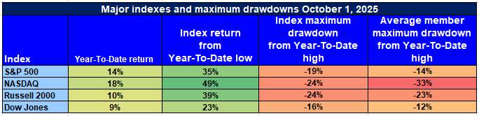 YTD: +14% | +35% lower than April low | -19% lower than YTD high | Avg. member: -14% from April low / -25% lower than YTD high