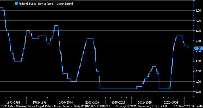 The Federal Reserve’s first rate cut of the year (-25 bps to 4.00-4.25%) is a primary catalyst. Markets are interpreting this move—along with Chairman Powell’s “risk-management cut” framing—as a shift toward accommodating weaker labour market signals while still watching inflation closely. Meanwhile, internal pressure is growing: Stephen Miran dissented for a steeper cut, and Trump has publicly pushed for more aggressive easing. These mixed messages matter. Investors are now trying to assess how much more easing the Fed will deliver, and how fast, which is driving futures higher and encouraging risk assets, particularly in the U.S.