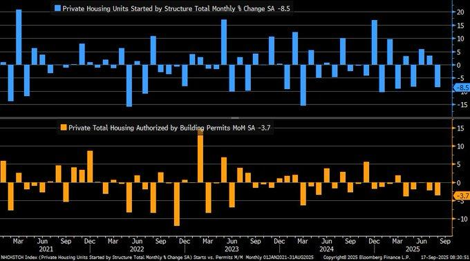 We at Zaye Capital Markets point out that U.S. housing starts declined 8.5% in August 2025, and permits for building declined 3.7%, sharply weaker than projected. The magnitude of the fall is bad news for residential building even as the country has been experiencing chronic housing shortage—roughly almost two million units annually. It reveals a fundamental disconnect: structural under-supply is in existence, yet builders are retreat-ing due to sluggish demand, higher costs, and less favorable financing.
