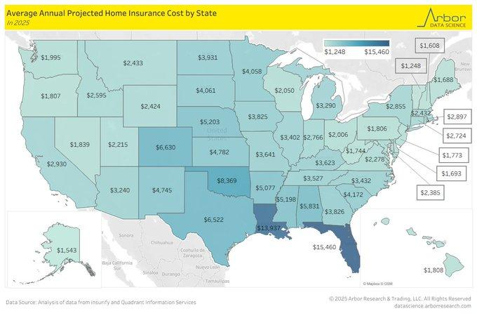 We at Zaye Capital Markets observe that housing affordability is being pushed even further by a spike in home insurance premiums, especially in climate-exposed areas. Florida’s $15,460 average annual price tag for 2025 is a reflection of the accelerating hurricane cycle, with ocean heating responsible for increasing the occurrence of hurricanes by 50% since 1980. That enduring risk is compelling insurers to deliver higher costs for reinsurance and claims, redesiging affordability even for families with fixed mortgage rates.