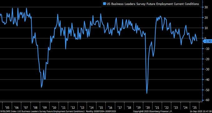 We observe at Zaye Capital Markets that the Future Employment Current Conditions index of the US Business Leaders Survey has relapsed into negative in September 2025, bringing to an end its fleeting recovery from earlier during the year. The sharp decline is illustrative of intensifying caution by business leaders whose employment outlook has deteriorated from mid-2022. The broader New York Fed Weekly Economic Index that incorporates real-time labour, production, and consumption indicators has also cooled off in similar fashion—suggesting that the script of the rebound being powered by services is losing steam.