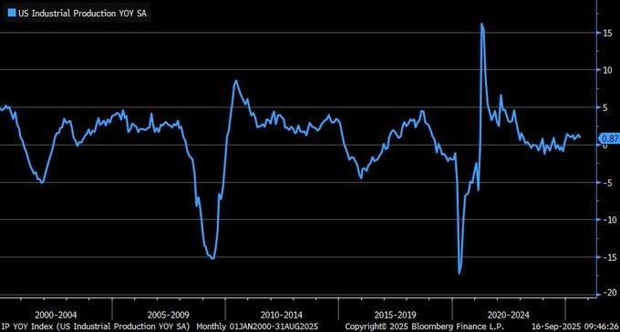 We at Zaye Capital Markets observe that US industrial production growth slowed to +0.87% year-to-date in August 2025 from a sharper 0.4% July fall, registering only a modest 0.1% month-to-month increase. The release indicates stabilization at a muted rate, reinforcing continued headwinds for manufacturing activity. Sector breakdown shows mixed results, with motor vehicle output increasing by 2.6%, yet more encompassing groups including machinery and consumer durables staying sluggish. It is the unevenness of this picture that again shows the volatility of industrial demand despite normalized supply chains by comparison to previous years.