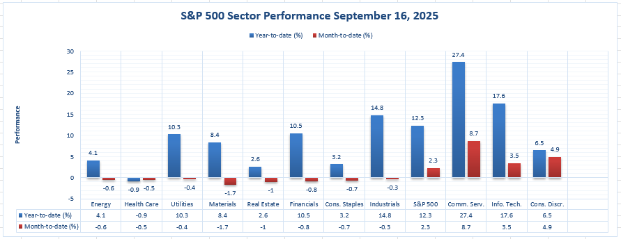 S&P 500 sector tracker (on 9/16/2025) by Zaye Capital Markets