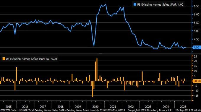 U.S. existing-home sales declined by just 0.2% in August 2025, significantly better than the forecast slid of 1.5%, reflecting the market’s strength despite continued affordability issues. Median prices rose by 2% year-over-year to $422,600, again reflecting persistent demand despite high borrowing costs. This resilience is a reflection of structural supply deficits continuing to support valuations despite consumers facing tighter purse strings. The data implies that the home market is stronger than expected rather than being extremely frail but its stability is spotty by regions as well as by income groups.
