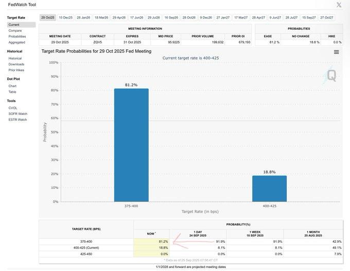 Hope for a Federal Reserve rate reduction at the October 29, 2025, meeting dropped sharply, with CME FedWatch probabilities decreasing from 81.2% to only 18.5%. The catalyst was stronger-than-expected jobless claims data that indicated initial filings at 218,000 for the week ended September 20, from 232,000. The decline strengthens the persistence of the labor market such that conditions continue resilient enough to diminish the need for another near-term easing of monetary policy. The reversal highlights the sensitivity of market sentiment to incremental labor commentary, especially against an existing backdrop of an economy already responding to earlier rate steps.