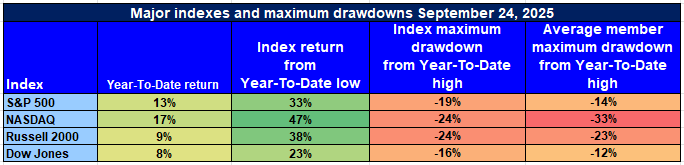 Major Index Performance up to Friday, 26th of September, 2025
