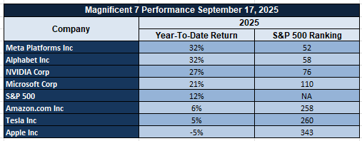 The “Magnificent Seven”—Apple, Microsoft, Nvidia, Meta, Alphabet, Amazon, and Tesla—continue at the forefront of index-level performance, but cracks are starting to form. Average drawdowns through the group are now over 18%, and markets are adjusting to hyperbolic valuations, particularly in technology fueled by AI-driven technology. Tesla and Meta have led the charge lower, while Nvidia has seen short-term benefit from the Intel partnership. The S&P 500 is extremely sensitive to this group’s direction, and until breadth picks up, sustained further momentum will be difficult to obtain. Rotation to energy, financials, and industrials can offer near-term relief, but new leadership by mega caps still resides at the forefront.