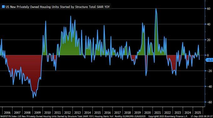 Zaye Capital Markets notes U.S. private housing starts turned negative year-over-year during August 2025, snapping recent stability and stoking fears about a softening growth environment. The reversal occurred despite Q2 GDP growing at a 3.2% solid clip, itself registering how housing diverges from wider momentum. With construction costs rising 5.8% annually and borrowing costs high, pressures on fresh builds are growing. Comparative history tells us housing downturns have tended to precede broader contractions and thus this reversal is a prime red flag to monitor closely for investors.