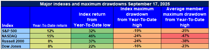 YTD: +12% | From 4/8/25 low: +32% | Highest loss below YTD high: -19% | Average peak loss per member: -25