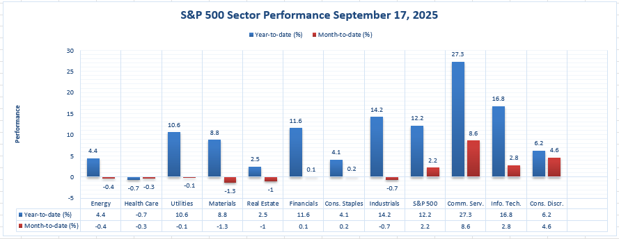 • Communication Services: +27.3% YTD | +8.6% MTD (strongest on both measures)