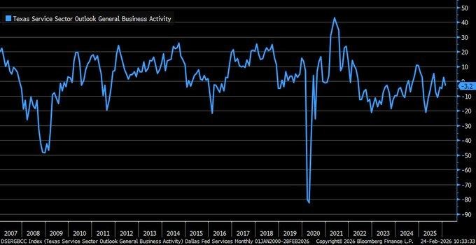 The Dallas Fed Services Index for February 2026 reported a drop to -3.2 from January’s reading of +2.7. This represents a significant drop in activity from expansion to contraction in Texas’ service sector. Since services contribute more than 70% to Texas’ economic output, this serves as an initial directional indicator of national momentum. Over the past several decades, similar dips in regional services surveys have preceded softness in national services purchasing manager surveys. This reading indicates demand is slowing down and prices are easing off. This is in line with the initial stages of disinflation.