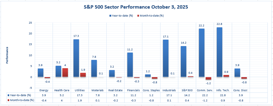 Through Oct 3, 2025, sector-level activity for the S&P 500 shows a distinct pattern of leadership—Information Technology and Communication Services have been ahead of all other sectors year-to-date, which suggests investor interest in growth names and innovative names even during a macroenvironment of selectivity and resiliency.