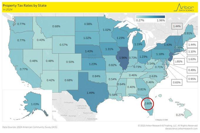 Recent 2024 property tax data reveals stark discrepancies between U.S. states, where high effective rates are observed for Illinois (1.96%), New Jersey (1.85%), and Connecticut (1.63%) and low for Hawaii (0.27%), Alabama (0.40%), and Arizona (0.42%). Such figures confirm a larger trend—the high-tax states, also those of the Northeast, continue outward migration as families and businesses require better tax environments for themselves. The allure of Sun Belt states is neither short-term nor purely economical, as lower property taxation is a real cost-of-living advantage for both renters and owners of houses.