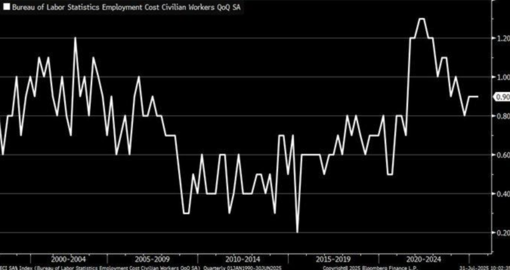 US labor expenses increased 0.9% in Q2 2025, just like in Q1, added the Employment Cost Index (ECI). The flatness is evidence of equally weighted wage and benefit pressure, while macro metrics had shown the cooling of the labor market. The ECI is based on data collected from more than 7,000 non-farm entities and is a broad measure of pay hikes—but is it perhaps hiding larger structural changes under the radar?