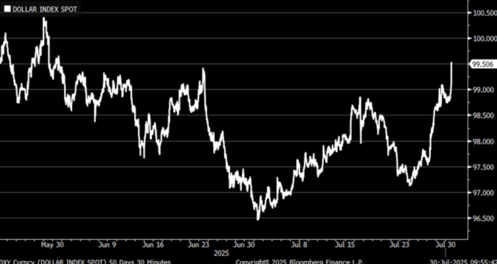 U.S. tech progress is being spearheaded by entrenched “Magnificent Seven” members Microsoft and Meta, which gained 8% and 11% in after-hours trading. Microsoft’s Azure cloud unit surpassed the $75 billion annual revenue run rate and posted its all-time best cloud growth, and Meta posted higher-than-estimated third-quarter sales projections. These report numbers have soothed investor fears that cloud-driven innovation and the AI world continue to fuel leading-line growth in the world of mega-cap tech. With such players driving much of index weightings, resulting post-earnings strength is driving overall sentiment and support for the health of the tech world. As well as the earning excitement, the geopolitical concern is easing slightly. Trump’s last-minute move to lift South Korean tariffs to 15% from the 25% previously threatened has allayed trade-sensitive industries. The last-minute move on the much-hyped August 1 tariffs deadline is seen as a tactical reevaluation of not bringing critical supply chains into play. The move comes on the heels of reports the White House is optimistic on trade negotiating on China. The moves indicate market-friendly pragmatism is resurgent in U.S. trade policy and checking near-term geopolitical risk premia.