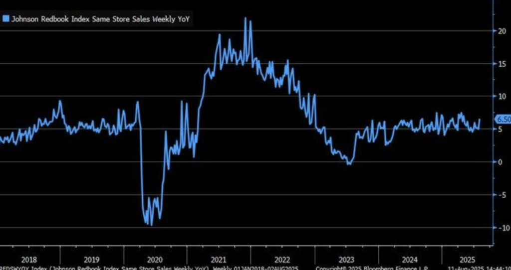 This trend is supported by other recent retail data, including a 0.6% month-on-month U.S. retail sales increase for June 2025, as reported by TradingEconomics.com. Collectively, these data points suggest a potential correlation with a broader economic recovery, although studies like that in the Journal of Retailing (2023) caution that indices like the Redbook can overestimate demand due to seasonal adjustments. These factors would skew perceptions of the underlying health of consumer spending and require a more nuanced interpretation of such indicators.