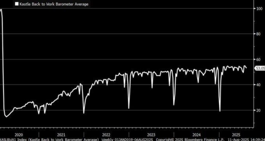 Kastle Back to Work Barometer, an office utilization measure through security card scans, achieved a pandemic peak of roughly 50% in 2025, which showed a strong recovery of visits to offices. Consistent with other Nick Bloom’s survey statistics at Stanford, this also evidences return visits to office centers.